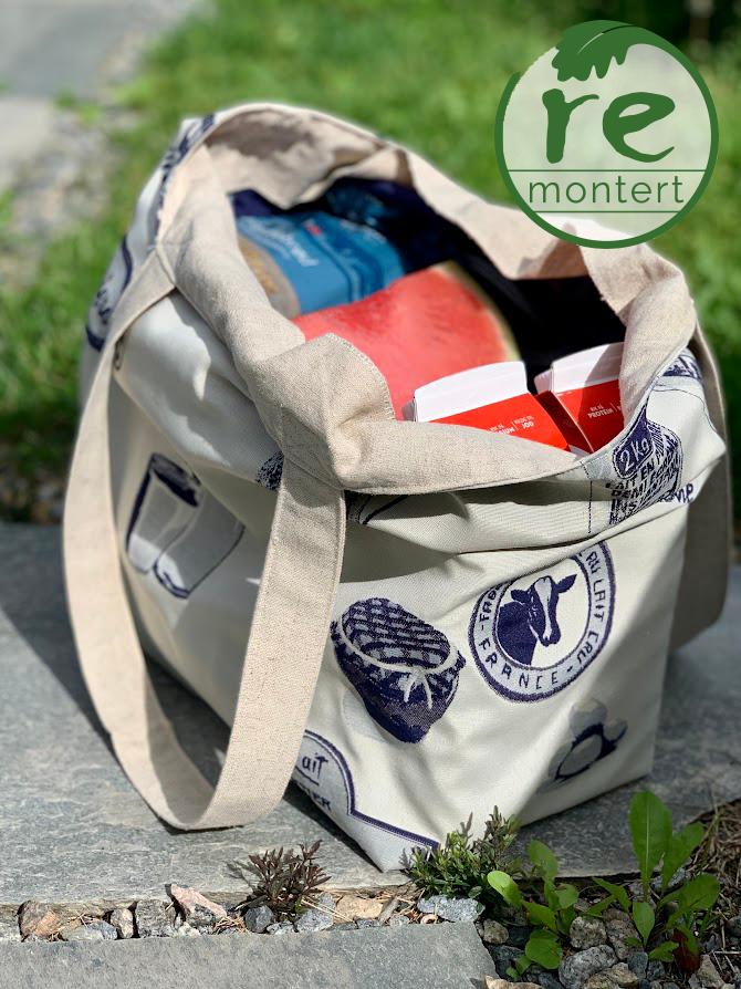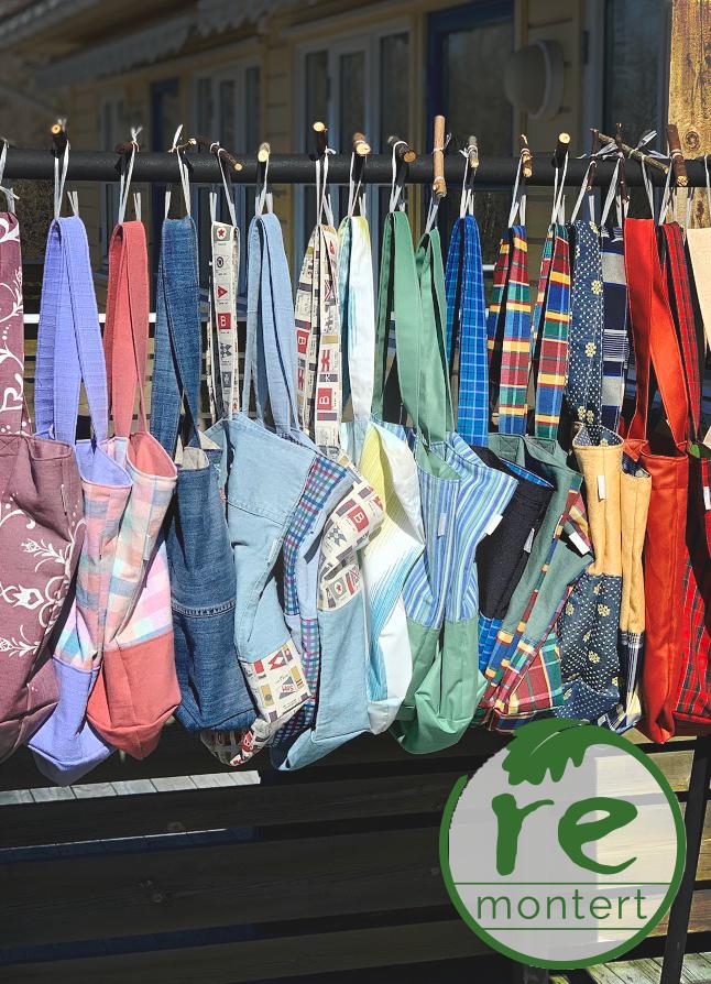 Handlenett/veske i gjenbruks tekstil – Remontert