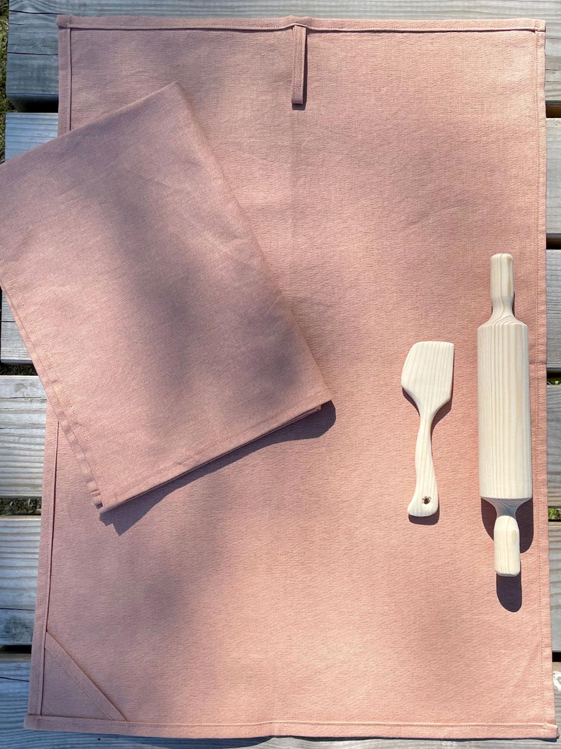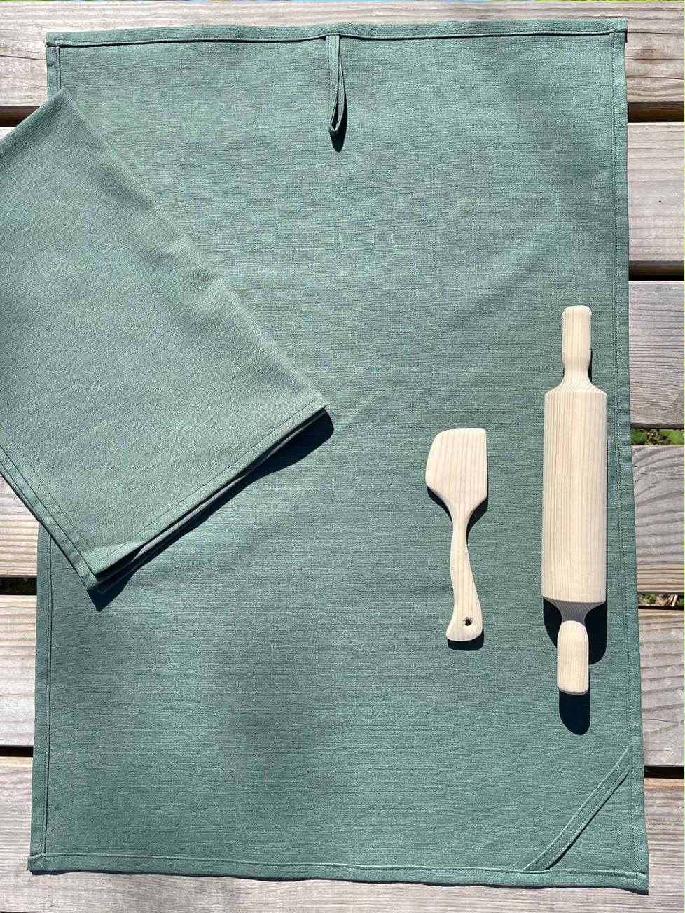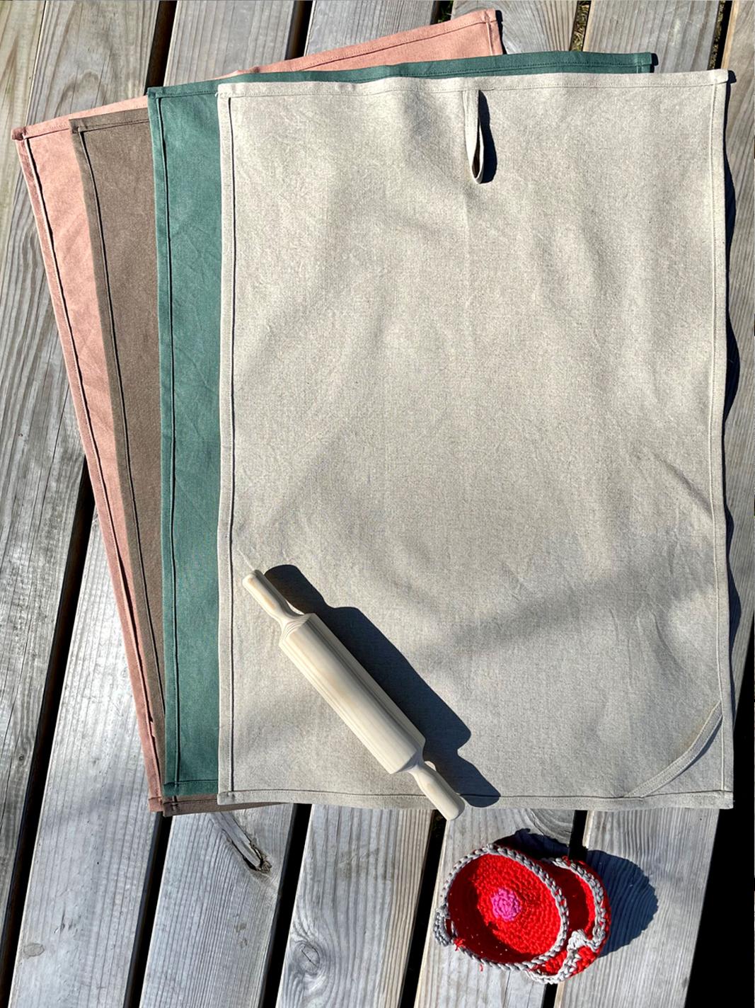 Kjøkkenhåndkle i lin/bomull med 2 ulike oppheng. Finnes i lys terrakotta, valnøtt, linfarget og grønn. Størrelse: 65 cm X 45 cm. Kan vaskes på 60 grader. Bestillingsvare. Må påregne noe leveringstid.